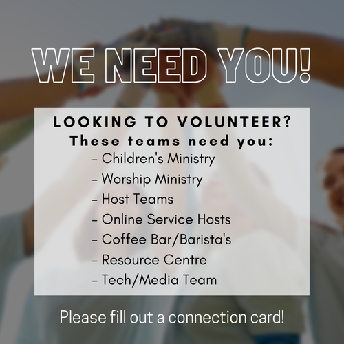 As a church, we believe that every person has been given gifts by God and that we should use those gifts to serve one another, which is why you will often hear us talking about TEAM VICTORY. We truly believe that each one us is a minister and that Moose Jaw is our congregation. Our vision and goal is to over-staff all of our ministries so that we are ready for growth and, therefore, are always looking for new people to get involved. Serving on one our ministry teams also helps you to get connected and get to know more people in our church family.